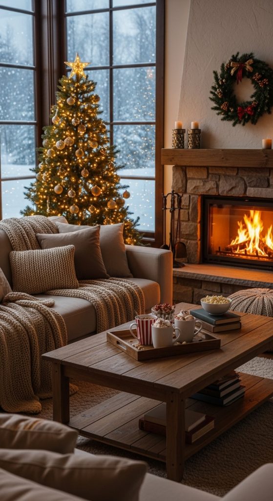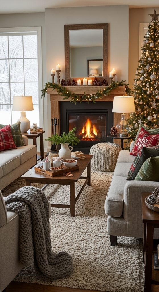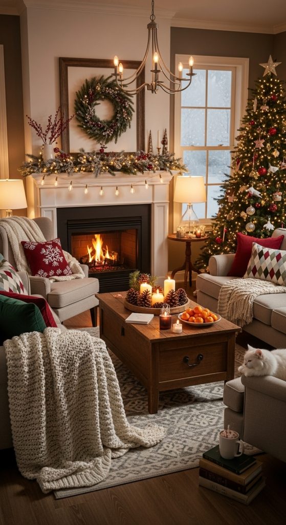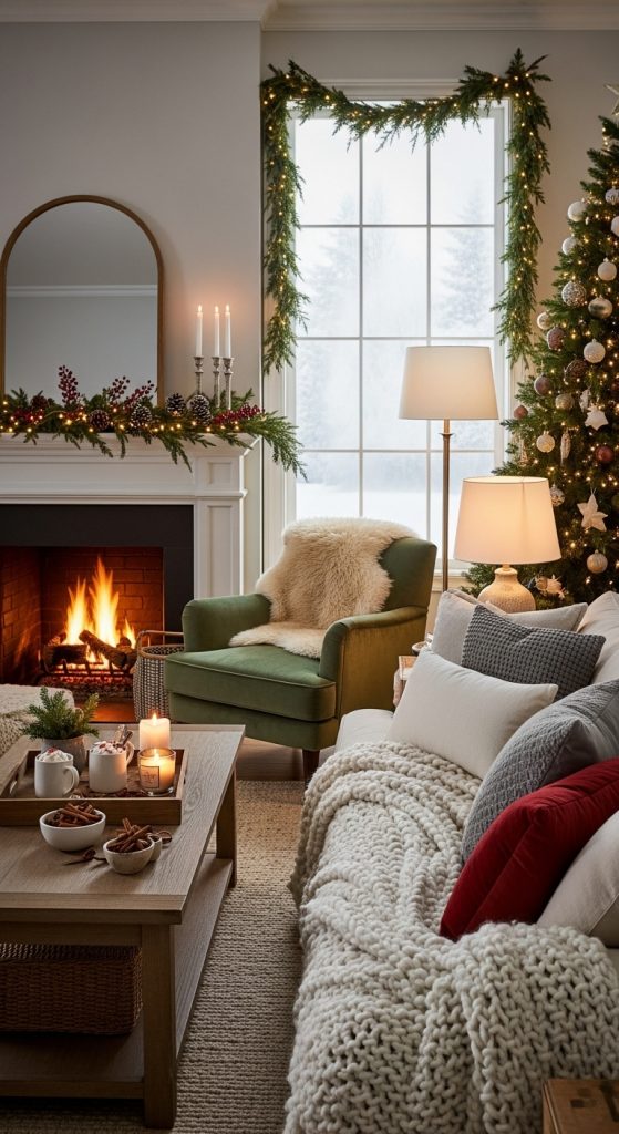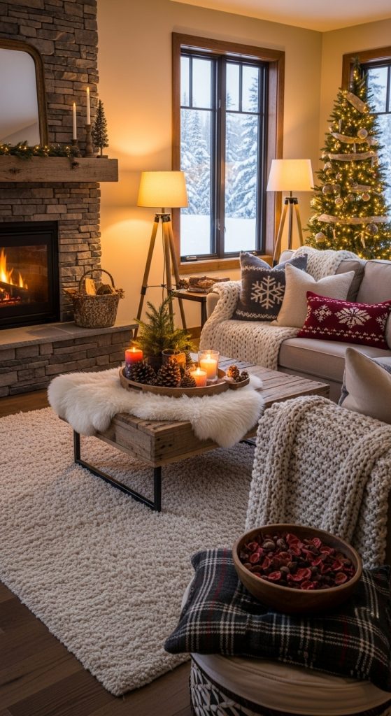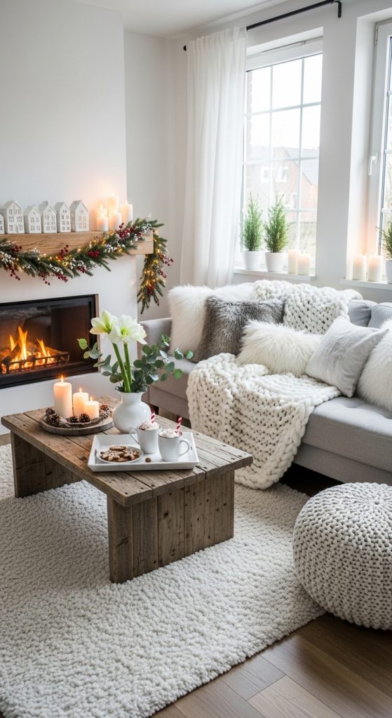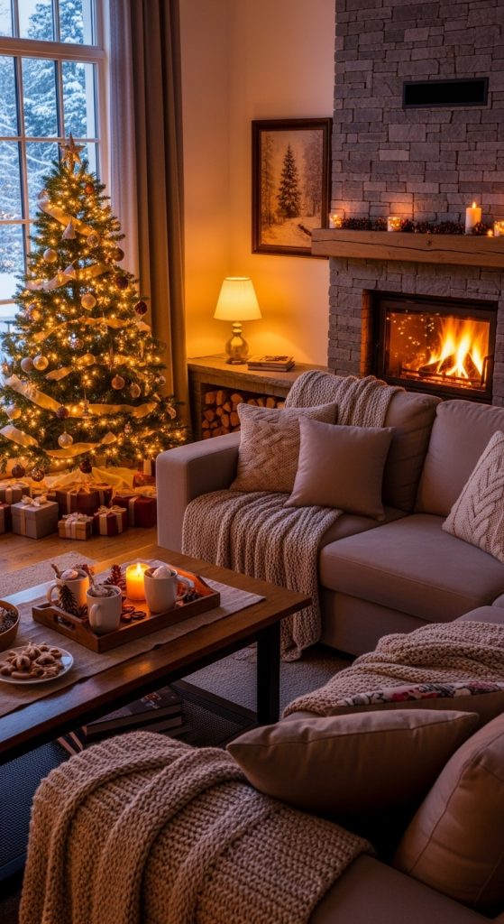Overall, these small details make a big difference. They transform a simple living room into a warm, personalized retreat for the winter season.